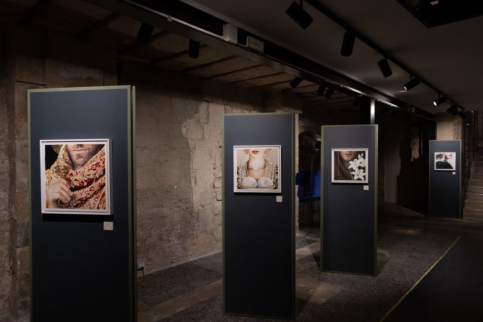 The exhibition path reinterprets the iconographic tradition of saints through a radically human perspective. The figures – Saint Agatha, Saint Francis, Saint Lucia, Saint Hildegard, Saint Peter, Saint Rita, Saint Rosalia, Saint Joseph, Saint Corrado, Saint Michael the Archangel, Saint Anthony, Saint Catherine, the Madonna, and Saint George – emerge as close and vulnerable presences, returned to the condition of men and women traversed by conflicts, choices, and responsibilities.