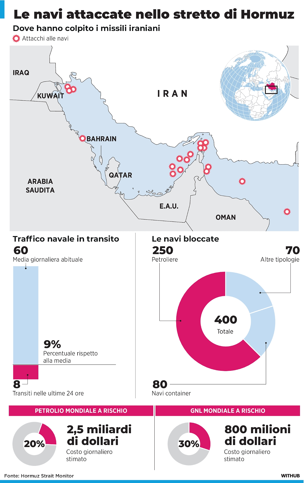Hormuz, the route that holds the world's breath. The Six's plan (including Italy) and the Iranian threat: "You will be complicit"